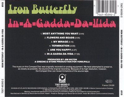 Iron Butterfly CD, In-A-Gadda-Da-Vida, Original 1987 ATCO